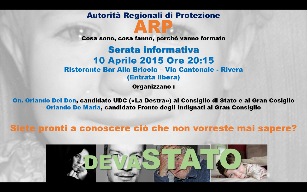 Perché partecipare? Perché nessuno è immune dalle ARP. Volete sapere come e perché? Ci si vede il 10 aprile a Rivera.